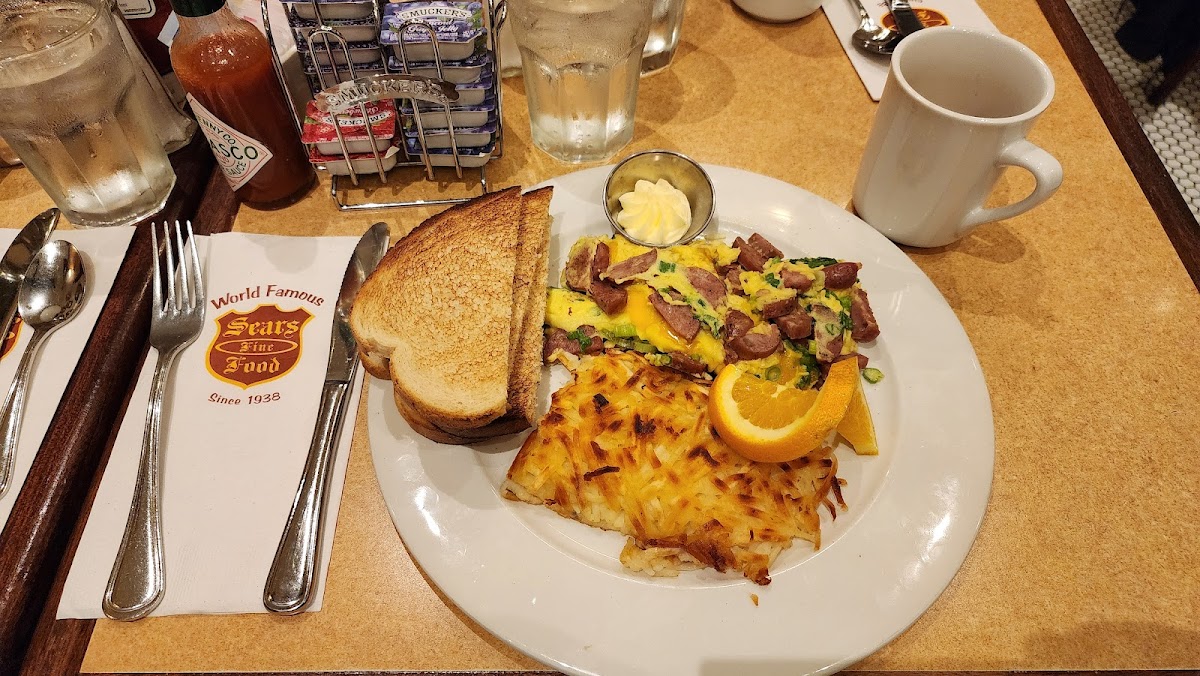 Visited Sears earlier this week for a birthday breakfast. Fist time we have been at Sears since 2013, and it is still delicious! We are only in town here every so often, so to have a solid place like Sears with such longevity means a lot. The place was packed, and we had a small 10 minute wait, but as always, well worth it. The swedish pancakes are bomb! Be sure to get the lingonberries to compliment. My go to is usually the corned beef and poached eggs. So tasty and savory. Pair all of this with some fresh hot coffee and a fruit bowl, and we had a wonderful breakfast. Although it was busy, the wait staff was on point. Everything was served timely and with a friendly attitude. We love Sears! It will always be a place that we visit when in town. Definitely check Sears out! We highly recommend!